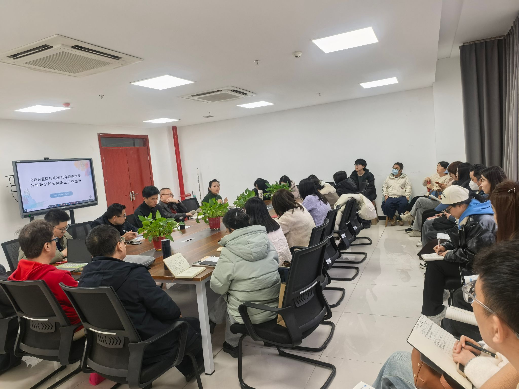 2月28日下午,交通运营服务系2026年春季学期开学暨师德师风建设工作会议在长安校区9号楼217室召开。会议由系主任韩洲雄主持,全系教职员工及本学期外聘教师共30余人参加。