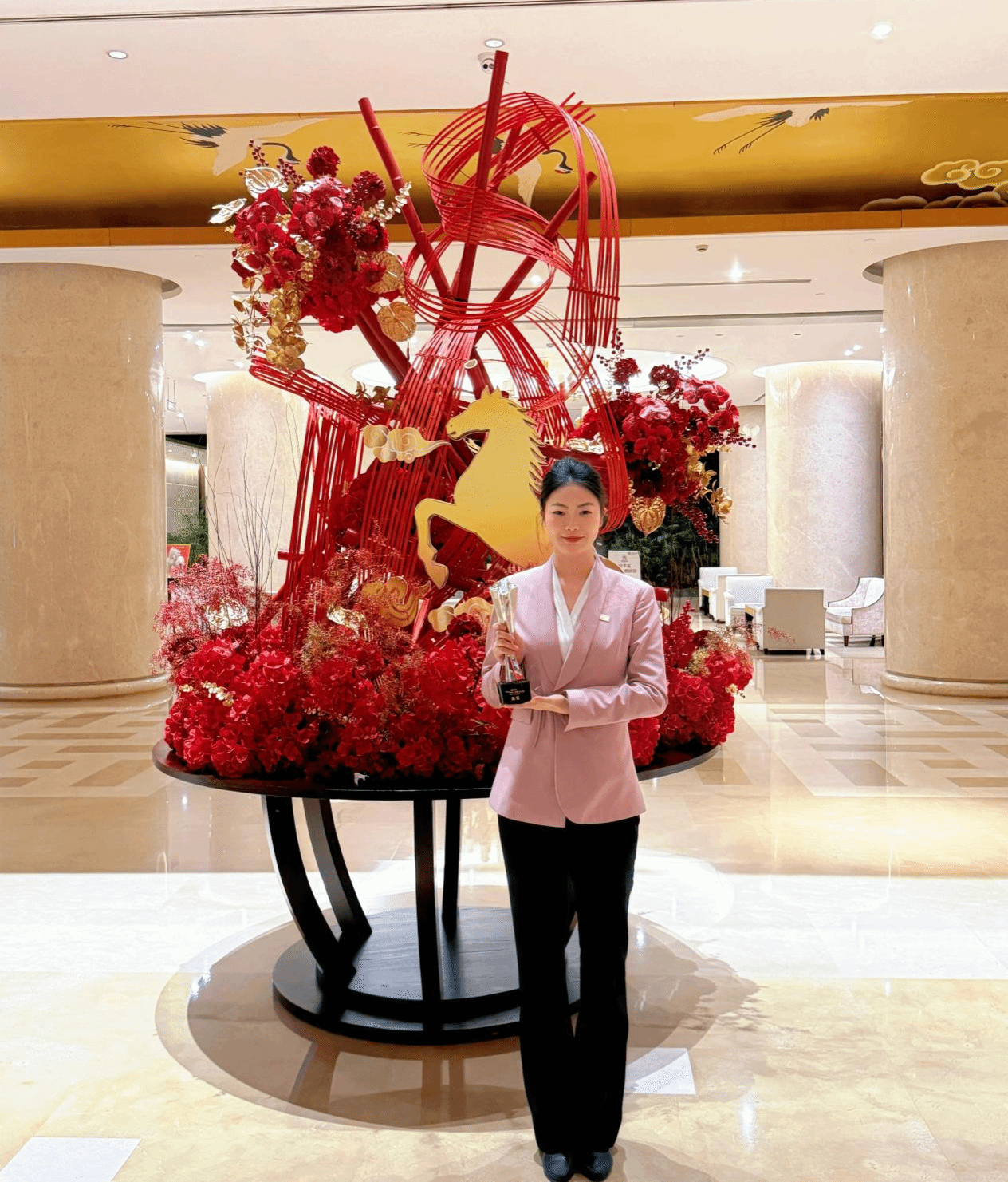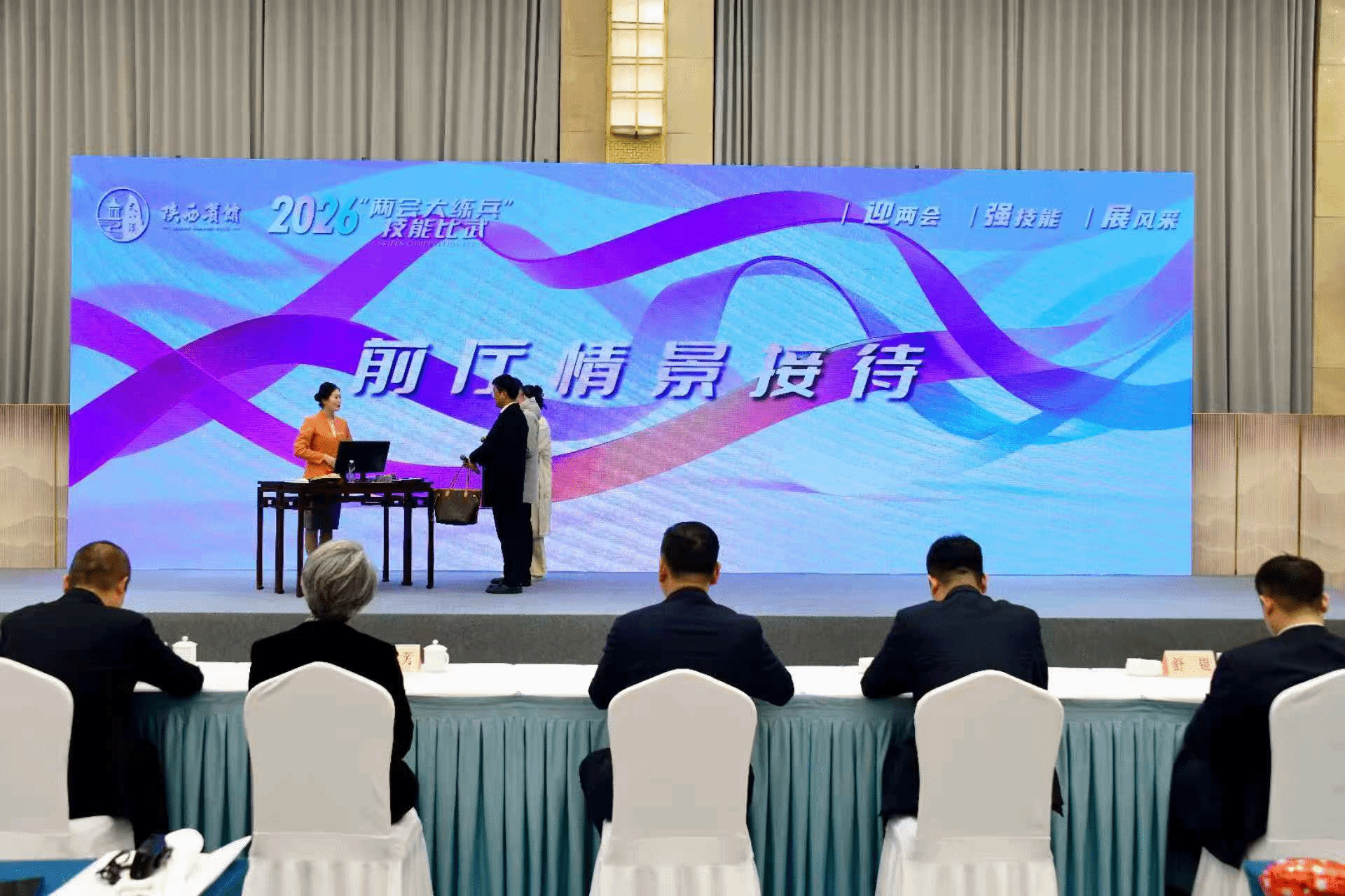 近日,从我校校企合作单位陕西宾馆传来喜讯,在2026年陕西省两会服务大练兵技能比武大赛中,2023级高速铁路客运服务专业实习生肖佳钰表现优异,荣获前厅情景接待项目二等奖。