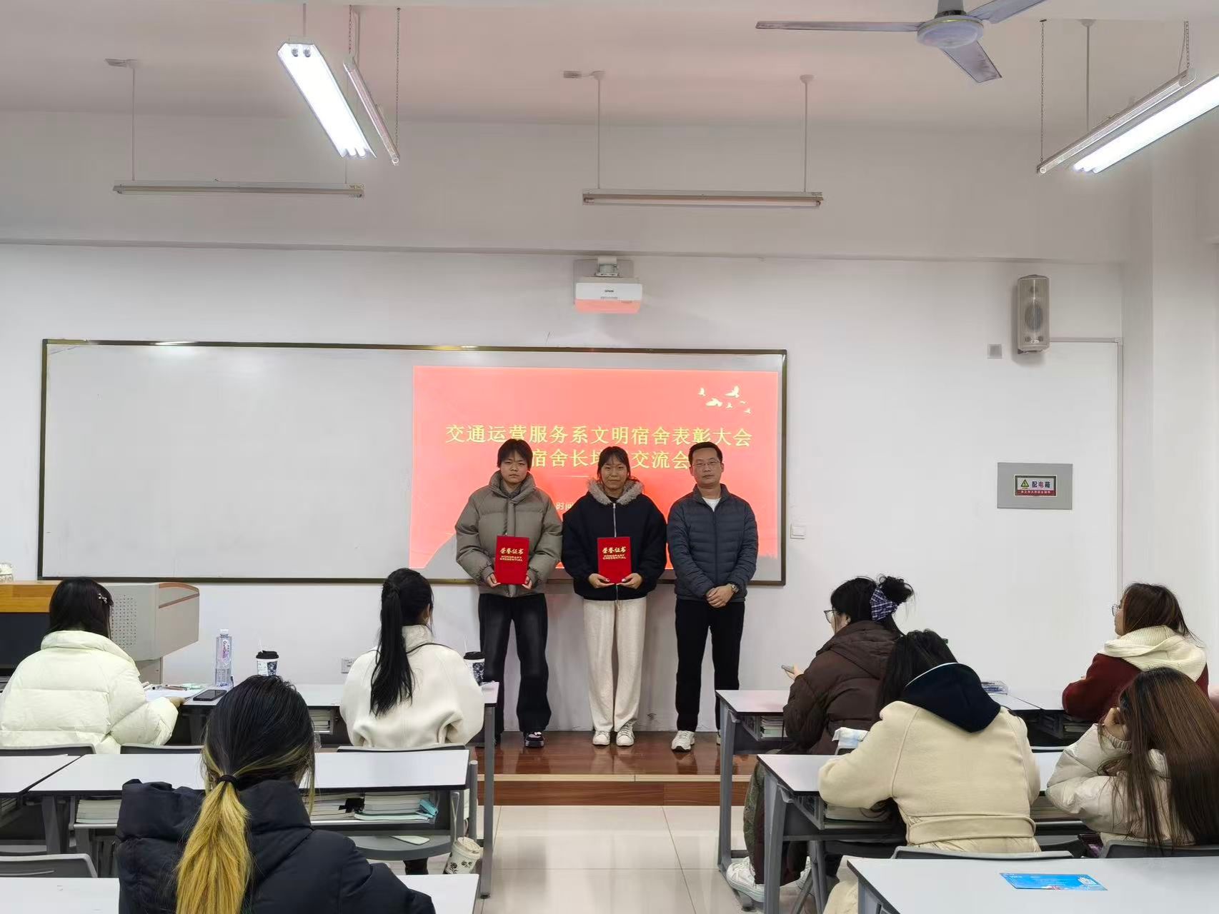 12月9日,为深入推进宿舍文化建设,提升管理服务水平,交通运营服务系举办2025年优秀宿舍评选表彰会暨宿舍长培训会。系团委书记叶子龙、2024级辅导员魏萌、班主任张媃媃以及2024级、2025级宿舍长代表、班级生活委员参加。
