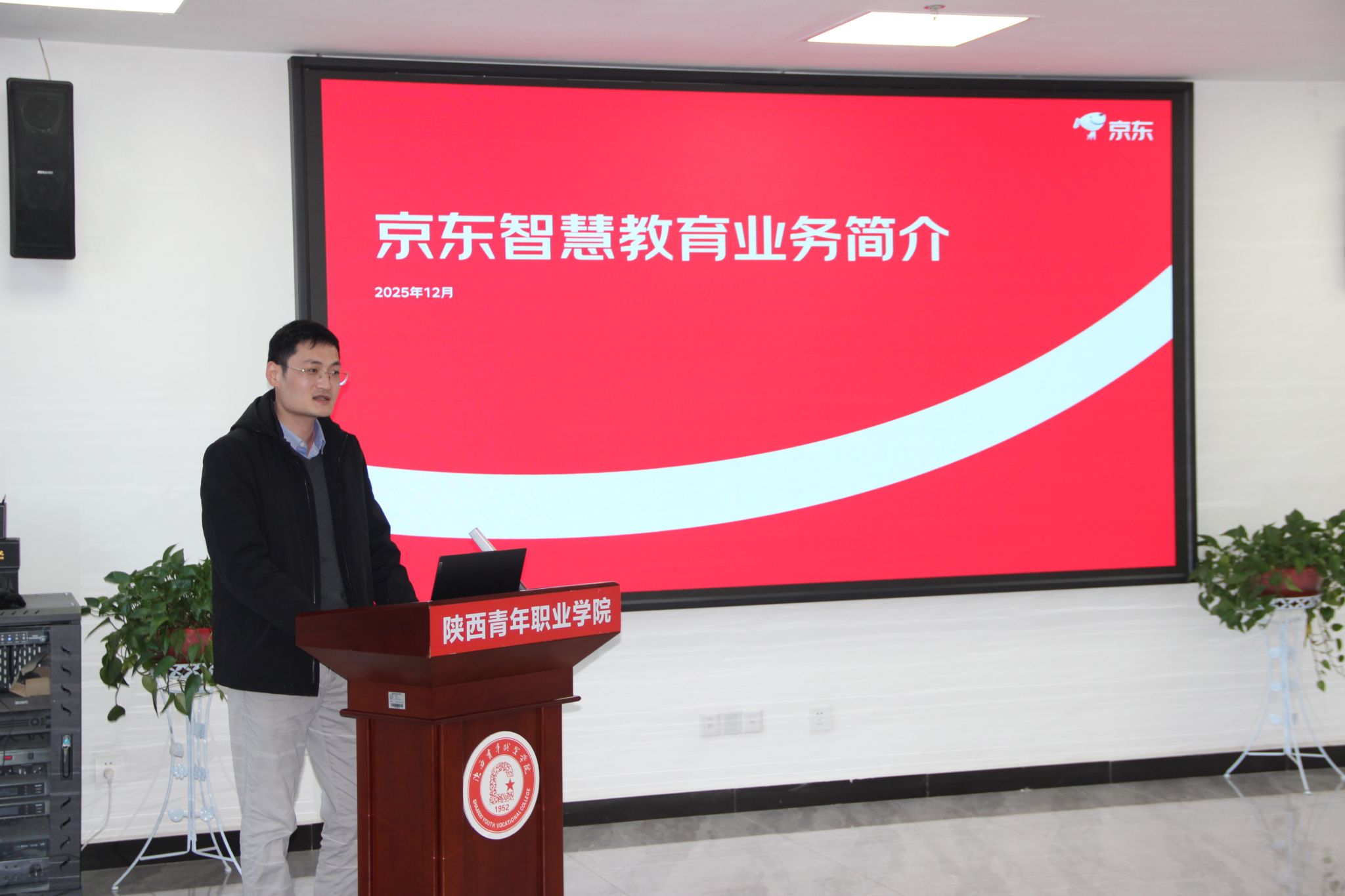 会议伊始,全体与会人员通过观看宣传片,全面了解了学校的发展历程、办学特色与育人成效。随后京东科技高级业务经理孔辰概括介绍了京东集团的业务布局及京东科技的校企合作业务;武汉厚溥数字科技有限公司常务总裁翁高飞围绕产业需求、企业优势及其合作模式,提出了该公司共建产业学院的规划设计,并分享了传统专业数字化升级与复合型人才培养的典型案例等有关内容。